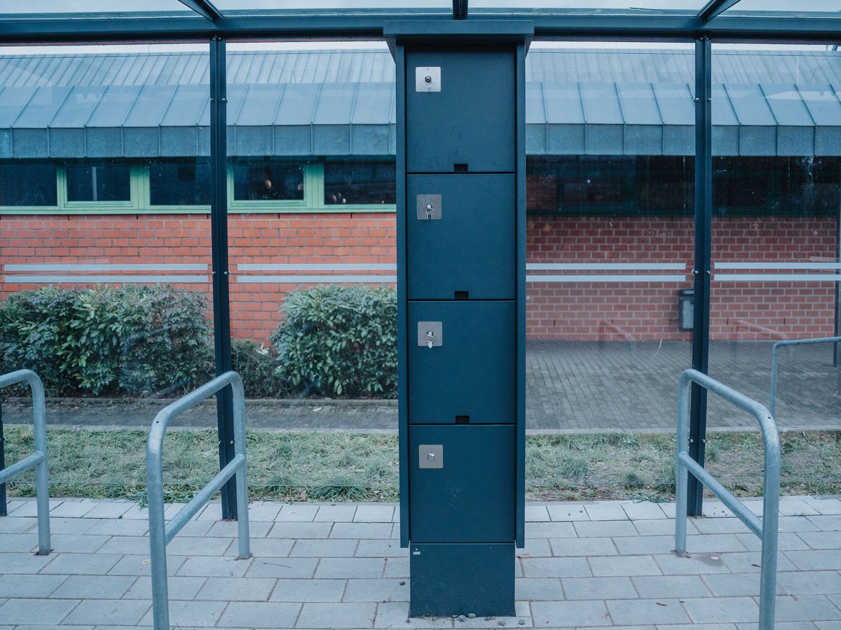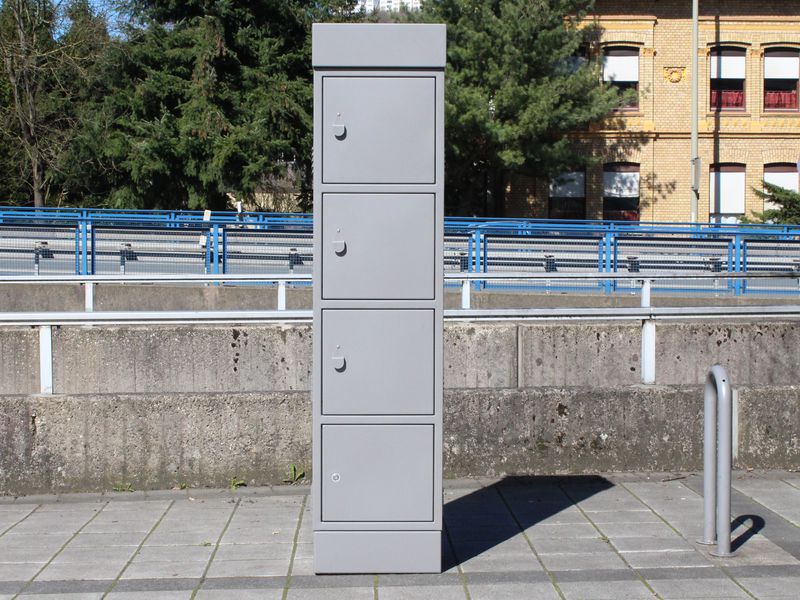 Belüftete Schließfächer, ausgestattet mit je einer abgesicherten Schuko-Steckdose für die Ladegeräte sowie ausreichend Platz für Fahrradhelm o. ä.