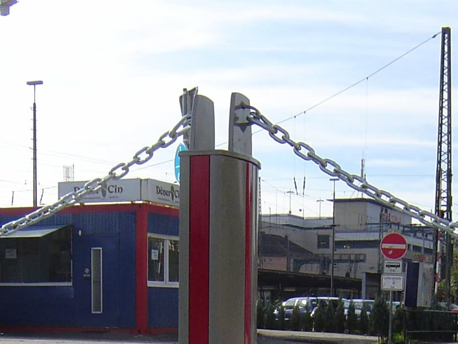 mit Absperrkette und Feuerwehrverschluss